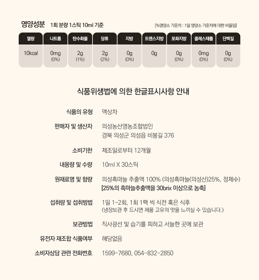 의성농산 진한모금 흑마늘 농축스틱 300ml(10ml*30스틱)