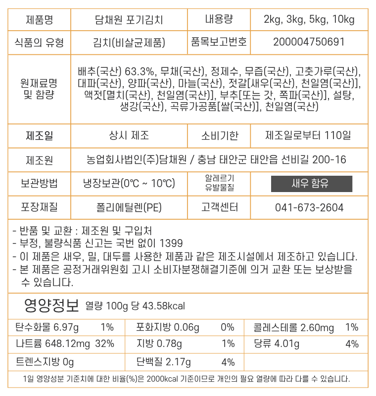 | 제품명 | 담채원포기김치 |