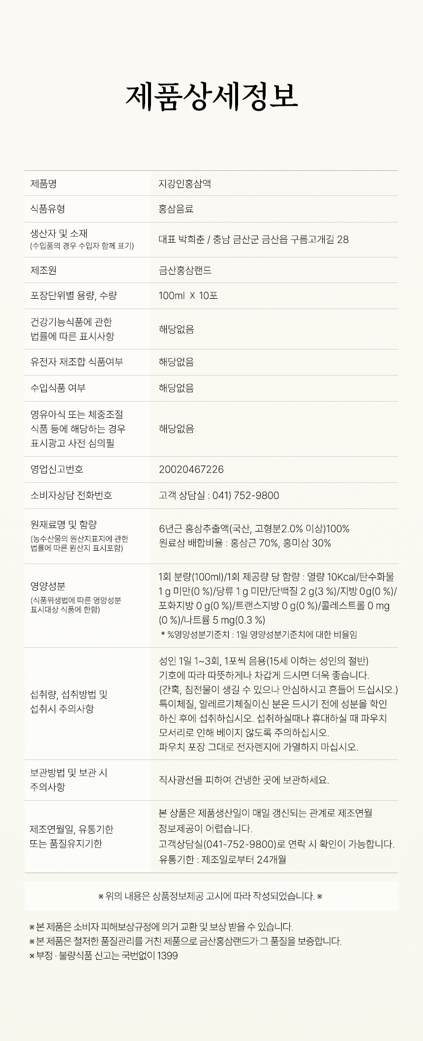 | 원료명 및 함량 (「농수산물의 원산지 표시 등에 관한 법률」에 따른 원산지 표시 포함) | 상세정보 별도표기 |