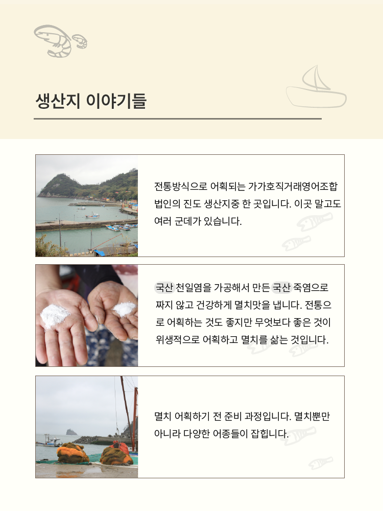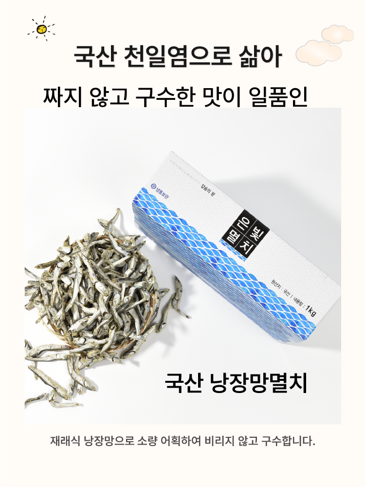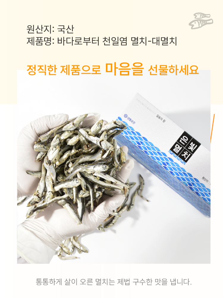 전통 낭장망으로 어획하고 국산천일염을 사용한 대멸치