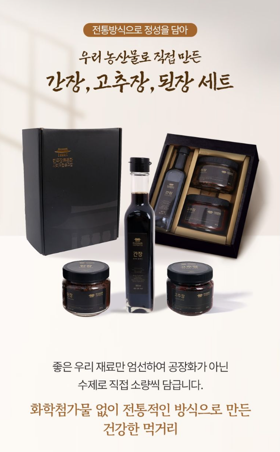 우리 전통방식 그대로, 장류세트(고추장500g+된장500g+간장300ml)