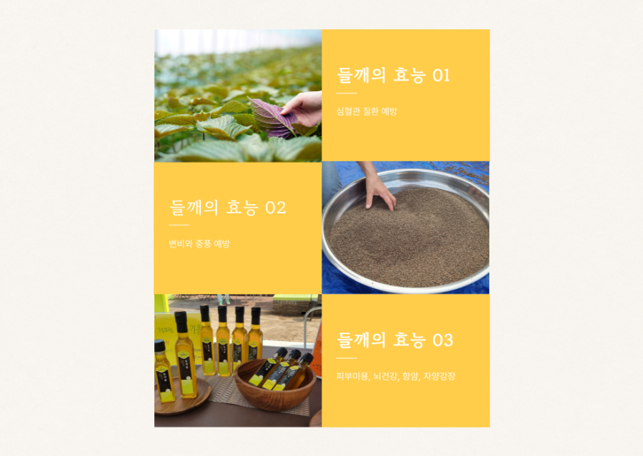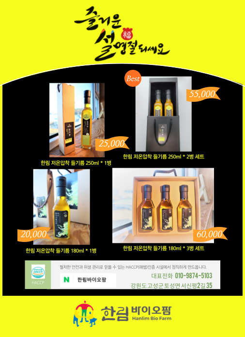 | 식품의 유형 | 저온압착 들기름 |