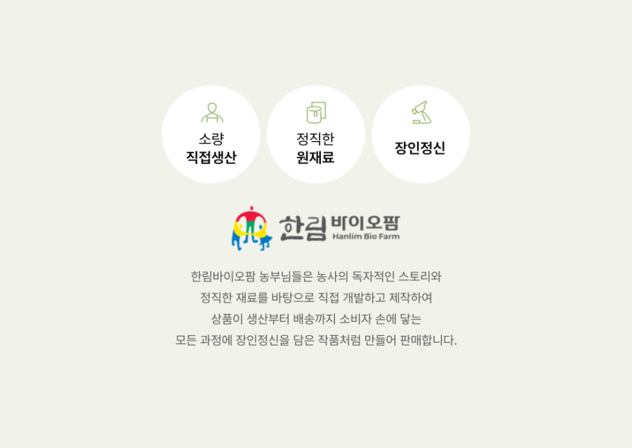 | 생산자 및 소재지(수입품의 경우 생산자, 수입자 및 제조국) | 한림바이오팜(강원도 고성군 토성면 서신평2길 35) |