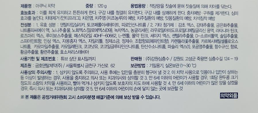 저자극 천연원료 아쿠닉 바다소금 치약 세트 360g(120g*3개)