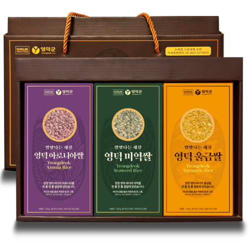[이벤트] 명품 쌀 선물세트 1.5kg(미역쌀+울금쌀+아로니아쌀)+영덕대게다시팩 3팩