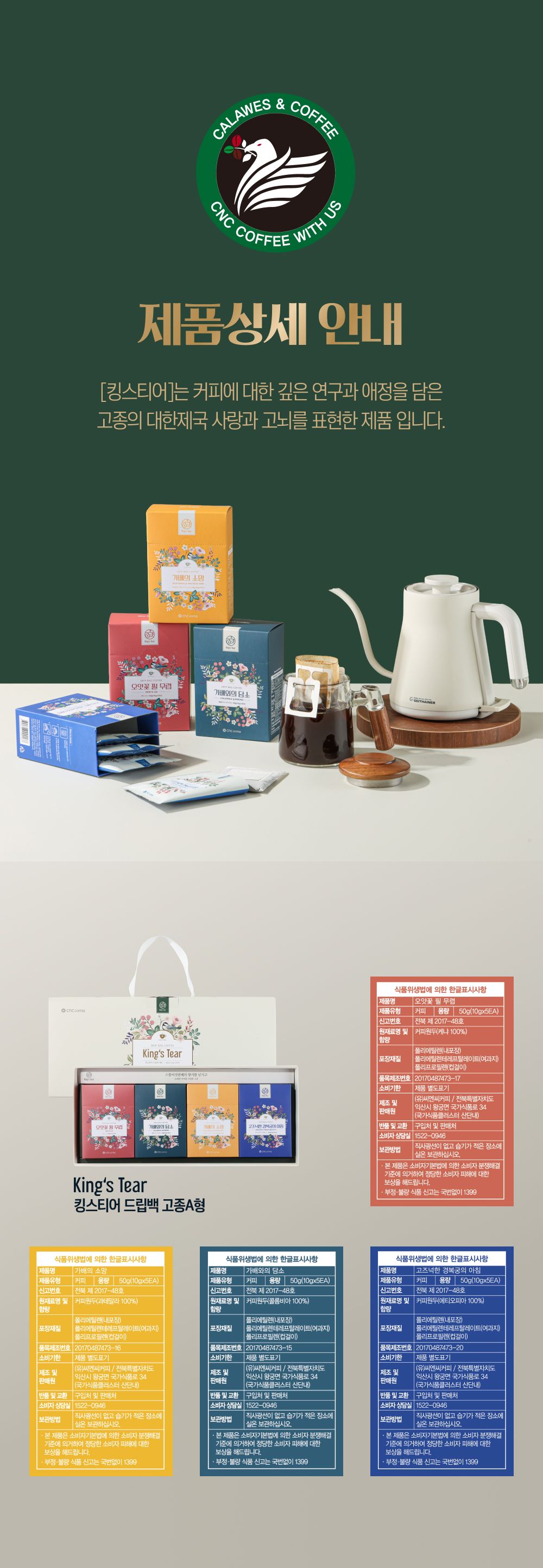 씨엔씨커피 킹스티어 드립백 5개입X4팩(10g) 고종A형