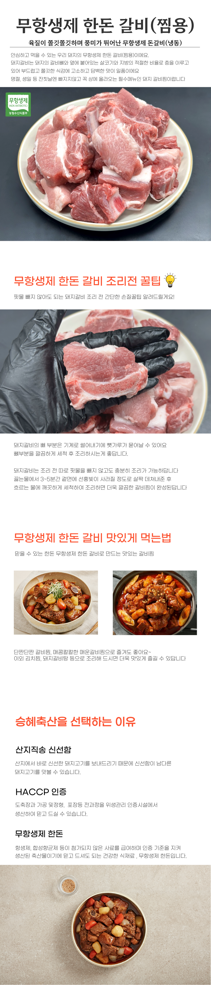 | 상품구성 | 무항생제 한돈 갈비 2.4kg( 800g 3팩)/아이스팩/아이스박스 |
