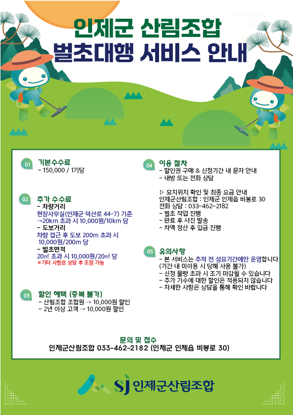 문의 및 접수 인제군 산림조합 033-462-2182 (인제군 인제읍 비봉로 30)
