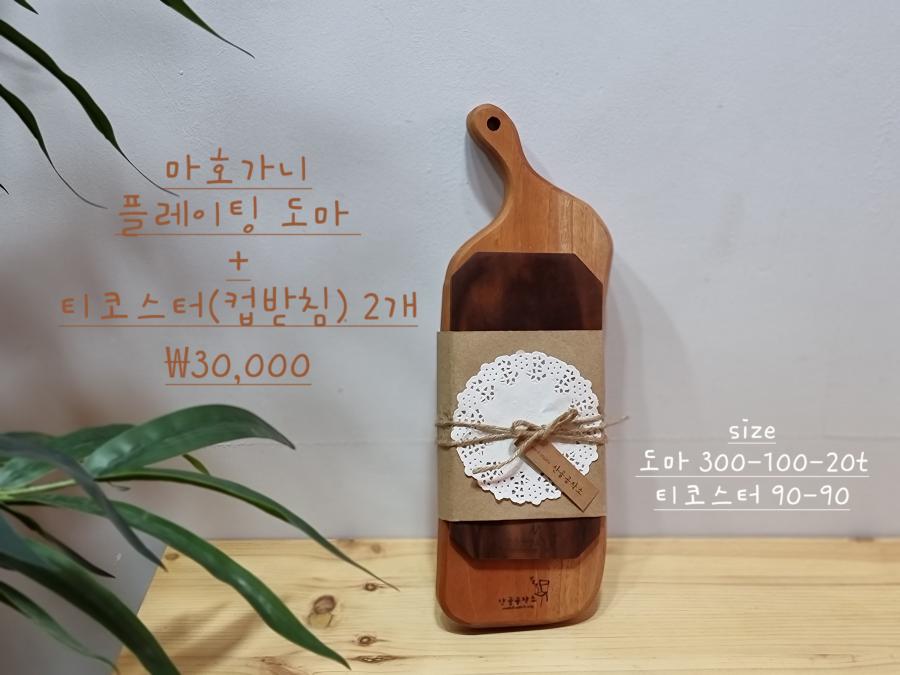 플레이팅 도마 1개+티코스터 2개 세트(레인트리, 마호가니, 웨루 중 랜덤발송)