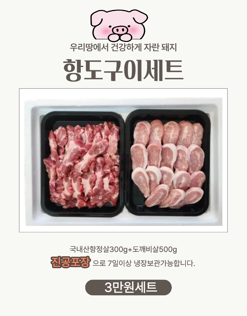 국내산 한돈 항도구이세트 800g(항정살 300g+도깨비살 500g)