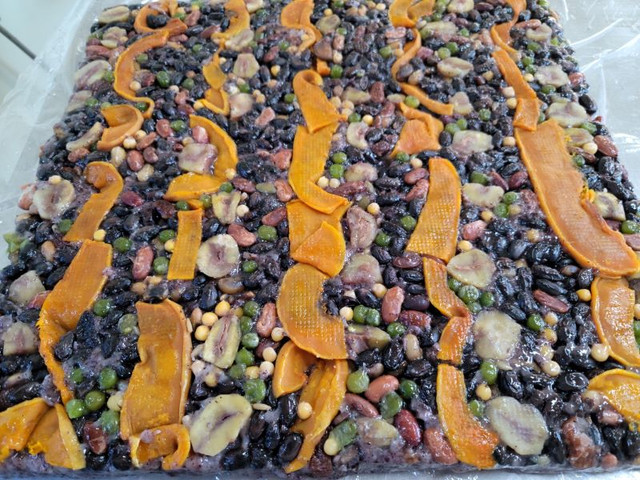 맛과 영양을 고려한 부재료 구성도 한산모시떡의 또 다른 특징입니다. 흑미, 콩, 호박, 밤 등 여러 가지 재료들이 어우러져 자연의 풍미를 한입에 느낄 수 있도록 만들었습니다.