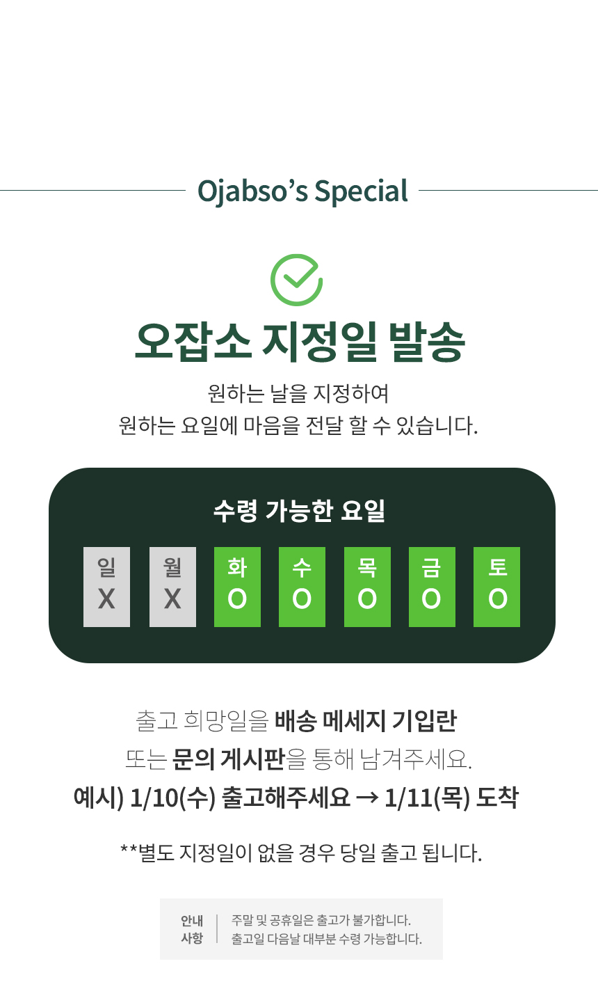 | 보관방법 또는 취급방법 | 3일 이내 섭취 권장, 보관 시 2도 이하의 저온 냉장고 보관 권장(최대7일이내) |