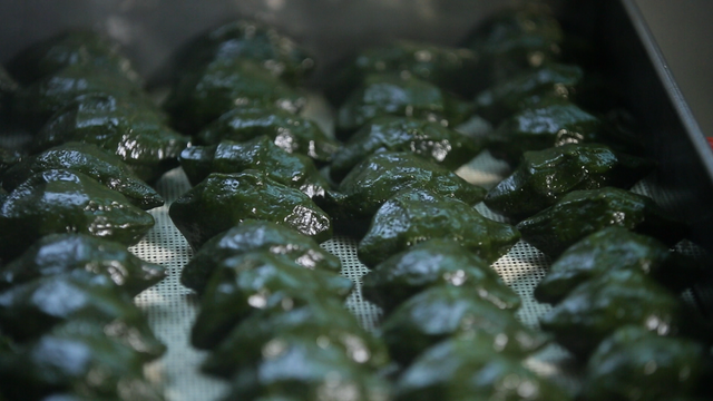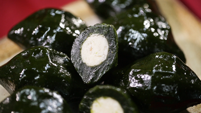 국내산 쌀과 동부 콩으로 채운 소, 여기에 모시잎을 더해 전통적인 깊은 맛을 살렸습니다.