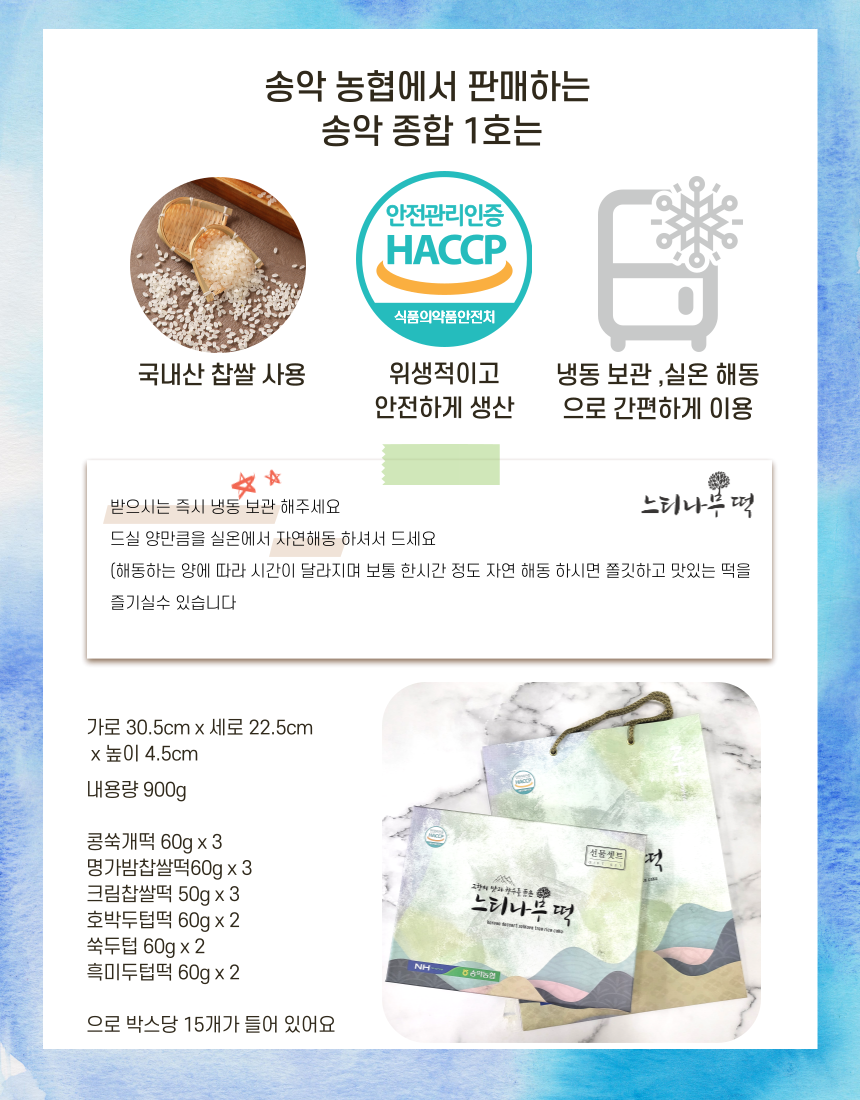 송악농협 냉동떡 1호 900g(콩쑥개떡, 밤, 크림 찹쌀떡, 호박, 쑥, 흑미 두텁떡)