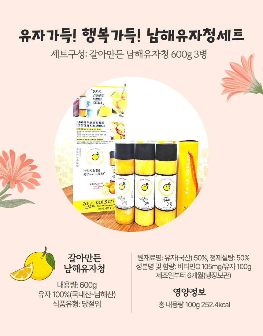 남해 수제 유자청 세트 1.8kg(0.6kg*3병)