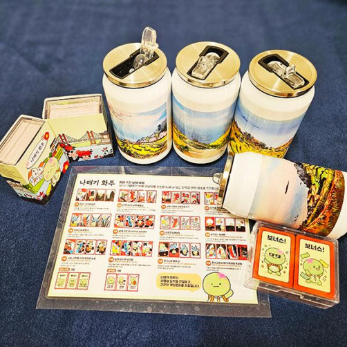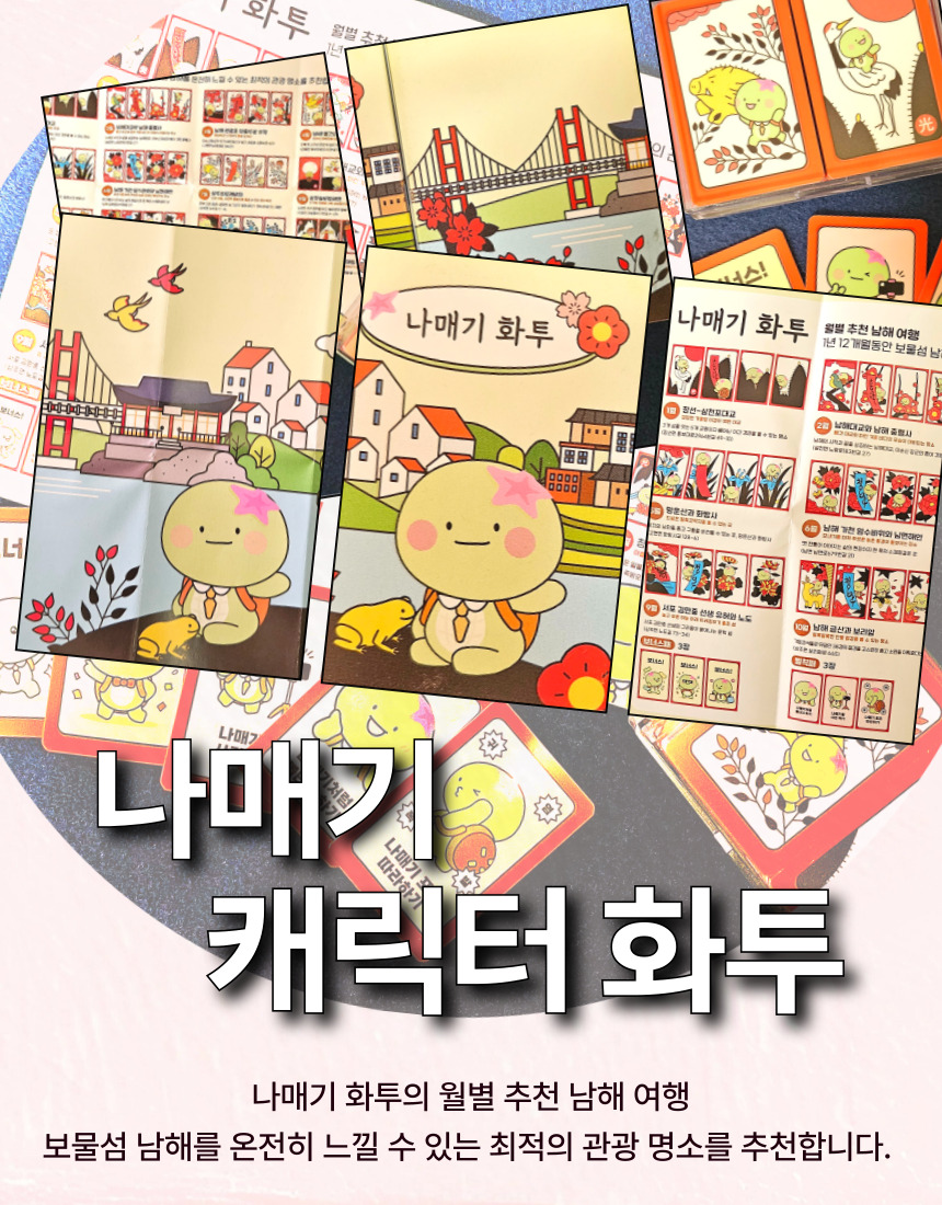 구성상품: 나매기 화투1+텀블러1 <나매기와 함께하는 감성남해 텀블러> - 나매기 화투 -제품명: 캐릭터화투재질: 플라스틱사이즈: 36*56mm판매원: 남해군관광문화재단사용연령: 만 14세 이상나매기 화투는사행성 도박을 근절하고,건전한 게임문화를 지향합니다. - 감성남해 텀블러 -용량: 350ml냉&온 기능이 탁월한 빨대형 텀블러맥주캔 사이즈로 아주 익숙한 텀블러윤슬처럼 반짝이는 멋스런 텀블러디자인: 감성남해(7점)/남해유자(4점)/행운의 해바라기/남해캘리/친구 --------------------------------------------------------------------------------------- < 캔버스에 수채화를 직접 그린 듯 한 느낌의 고급 아트지를 사용한 감성남해 엽서 7점> <다랭이마을 봄> <다랭이마을 여름> <다랭이마을 가을> <다랭이마을 겨울> <상주은모래비치> <남해 독일마을> <남해 금산> https://osidanamhae.modoo.athttps://www.instagram.com/osidanamhaehttps://smartstore.naver.com/osidanamhae