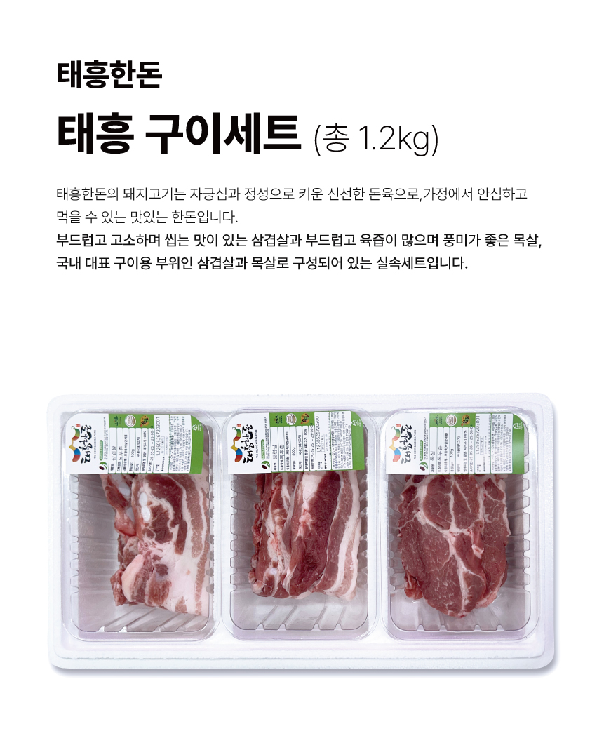 태흥한돈 구이세트 1.2kg(삼겹살 0.4kg*2팩+목살 0.4kg)