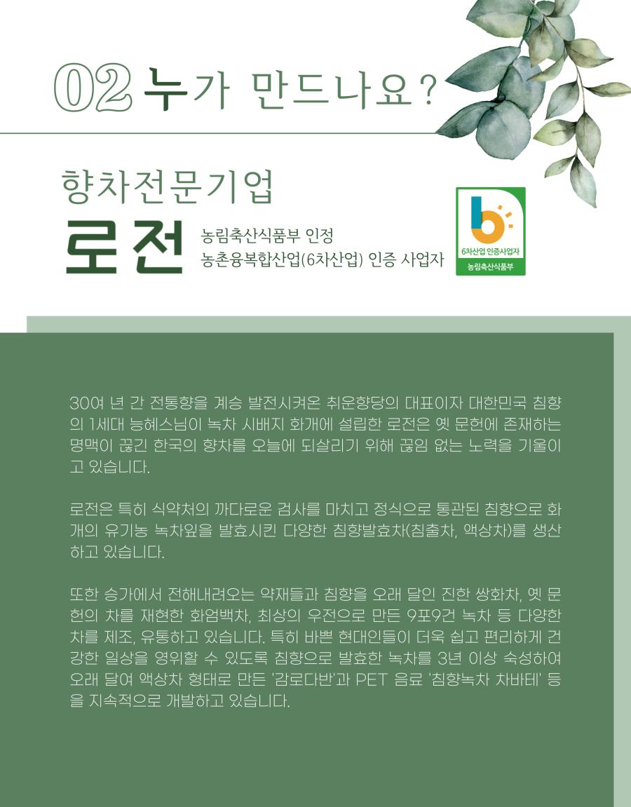 | 생산자 및 소재지 | 로전(하동군) |