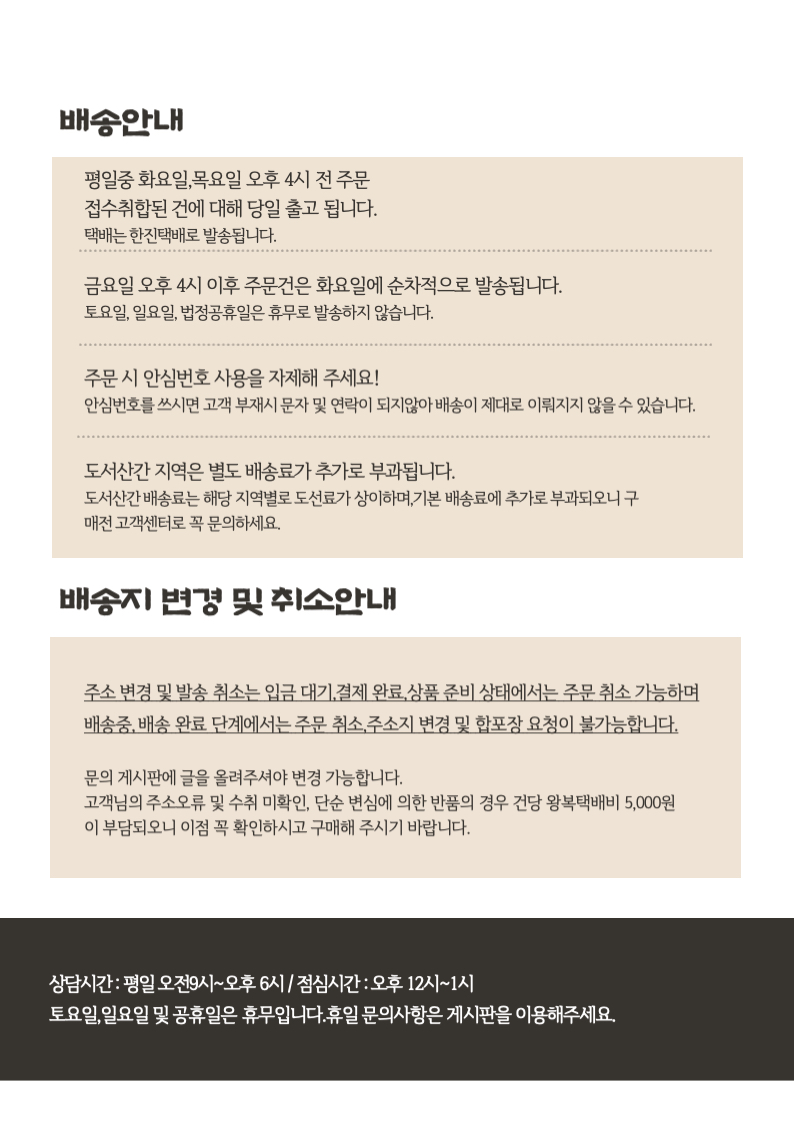 연말 주문량 증가로 인해 배송이 1~2주 지연될수 있습니다. 너그러운 양해 부탁드립니다.
