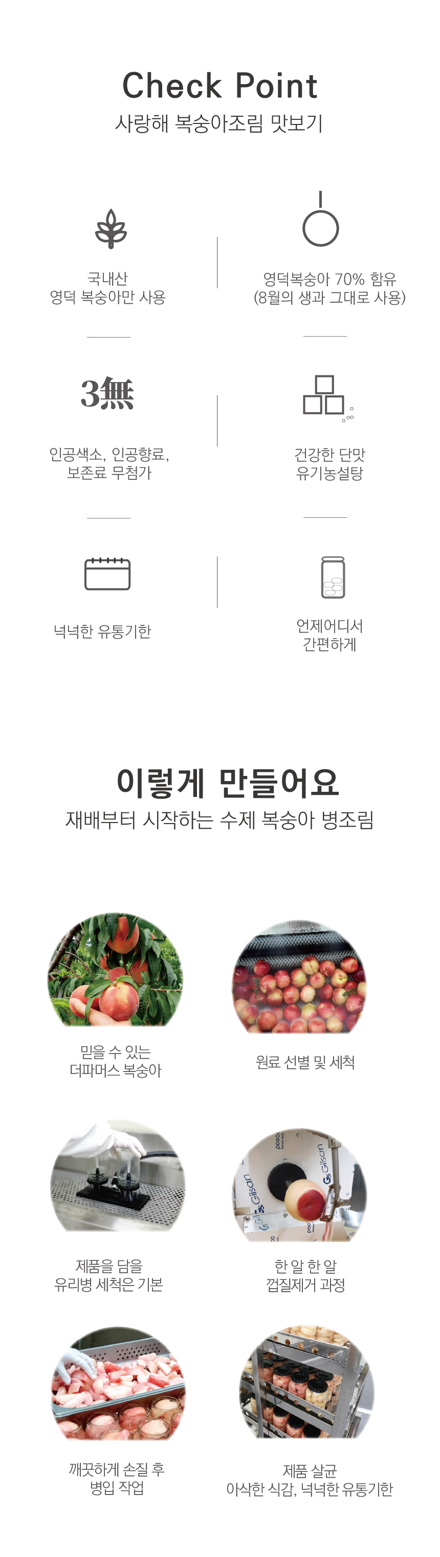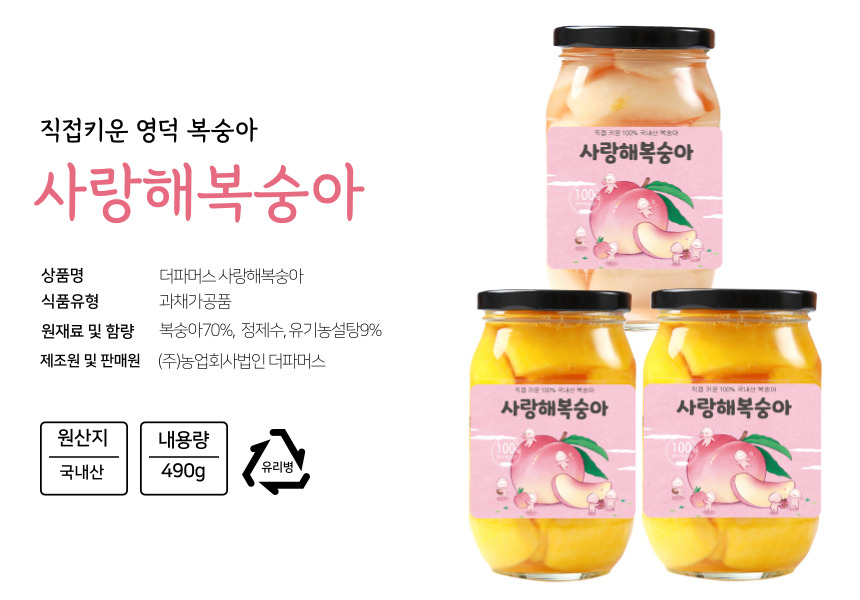 | 원재료명 및 함량 | 복숭아(국내산)영덕군, 유기농설탕9%,정제수 |