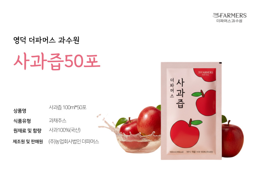 | 원재료명 및 함량 | 사과100%(국산) |
