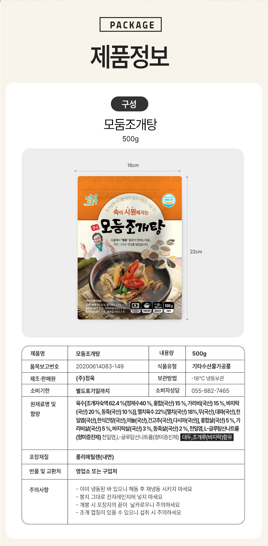 국내산 모둠조개탕 3kg(0.5kg*6팩)