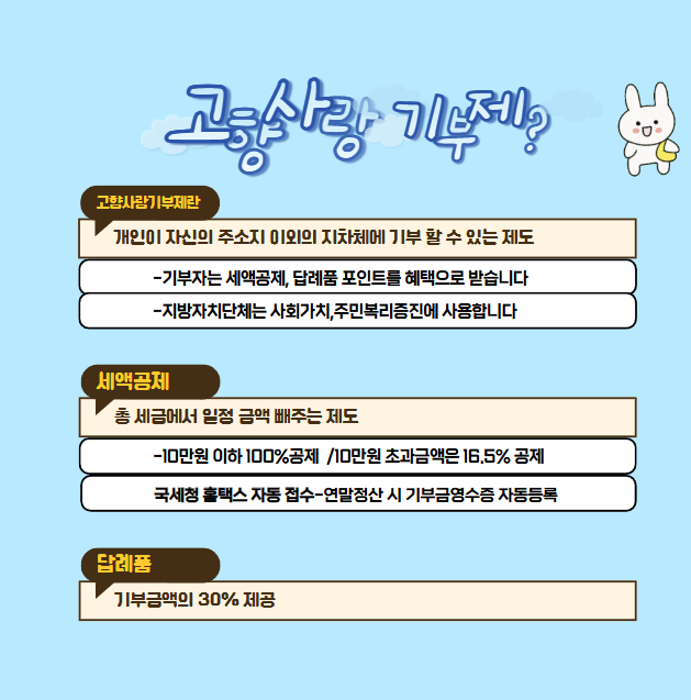 고향사랑기부금 30% 이내 답례품 무료 제공