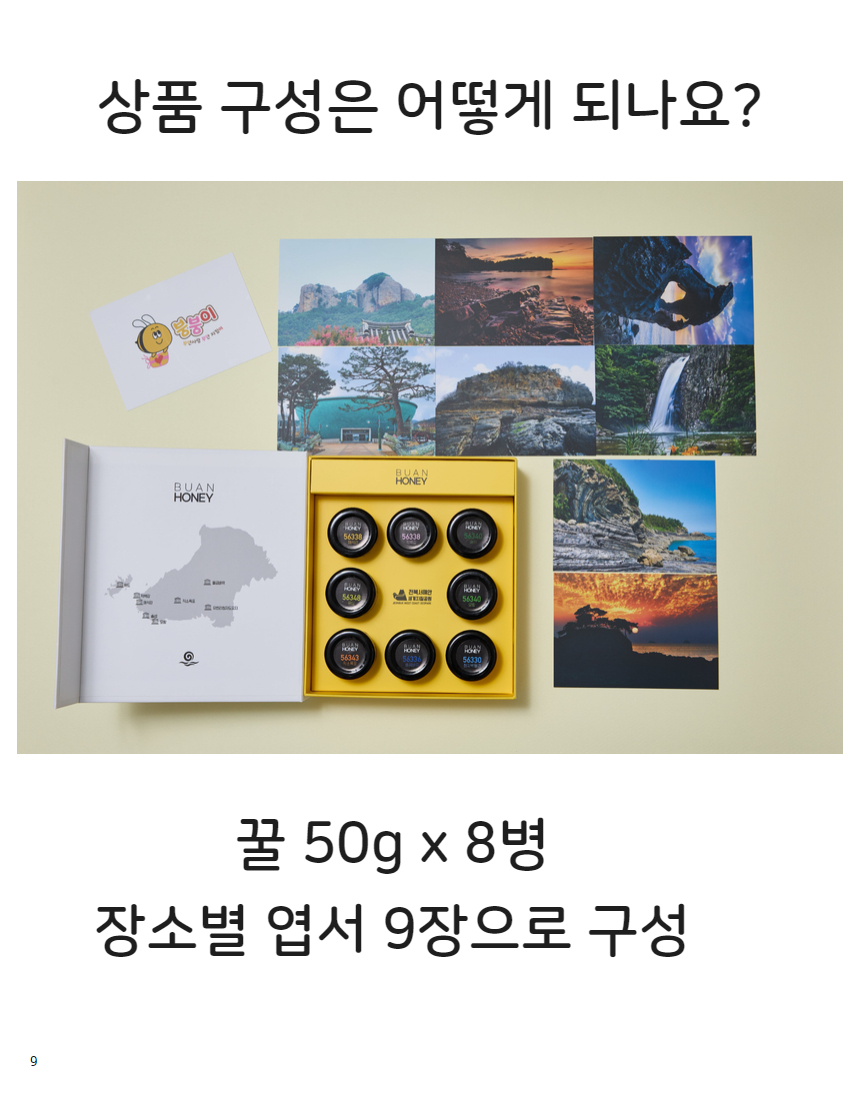 부안허니 8종 세트 400g(꿀 50g*8병+엽서 9장)