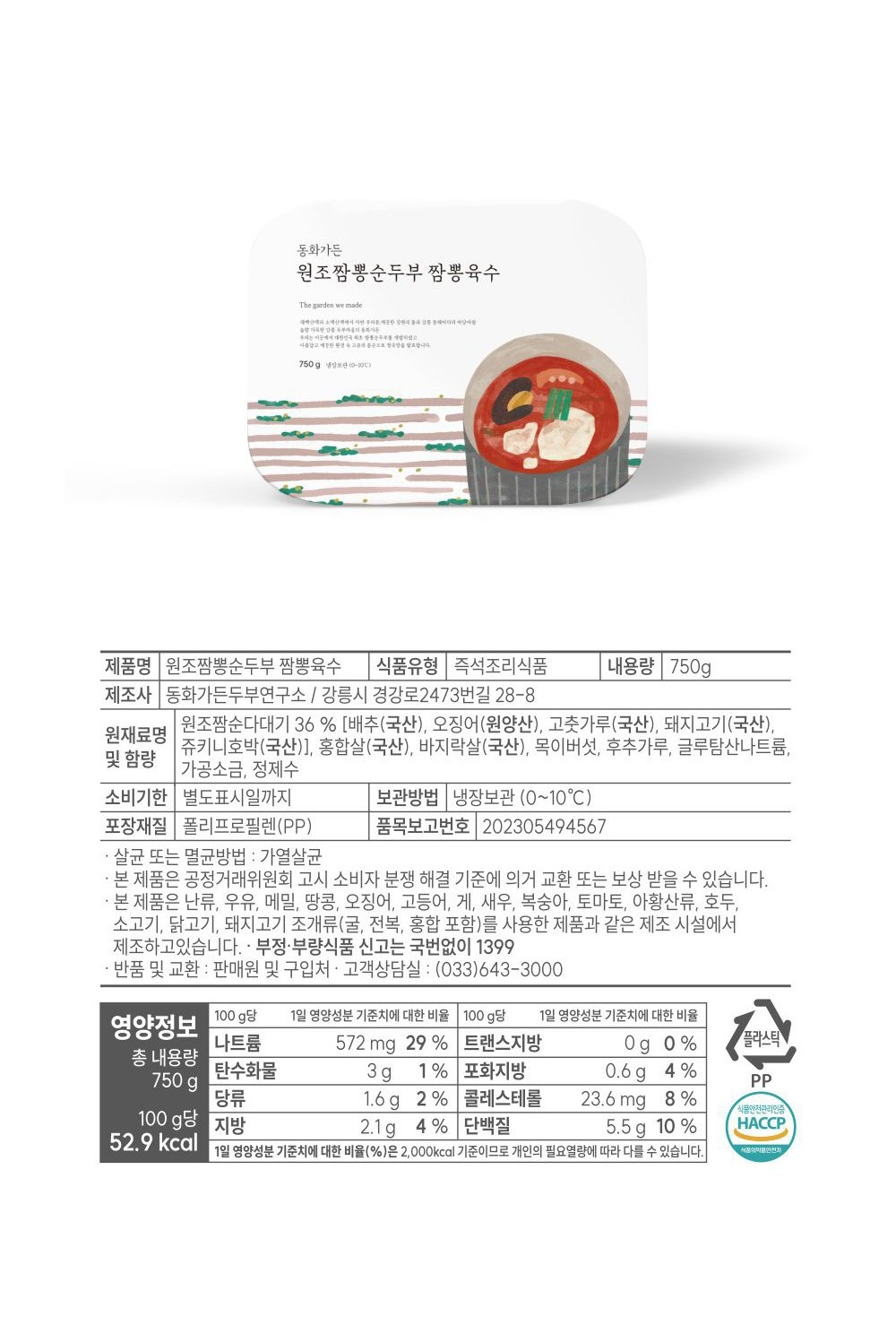 구성품 : 순물순두부(1000g)+원조짬뽕순두부육수(750g)+국산콩비지찌개(850g)