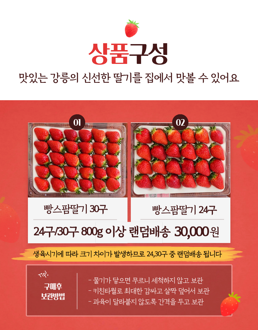 강릉 설향 딸기(24, 30, 35구 중 랜덤발송)