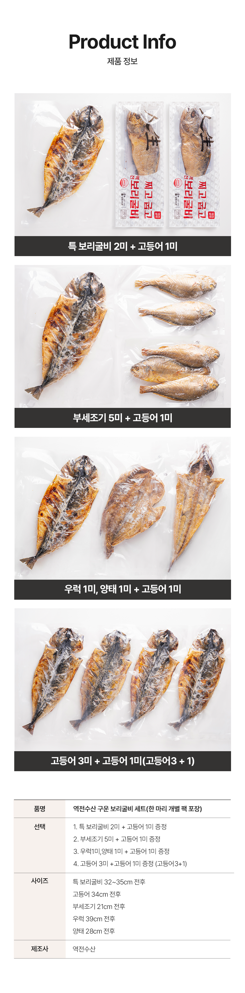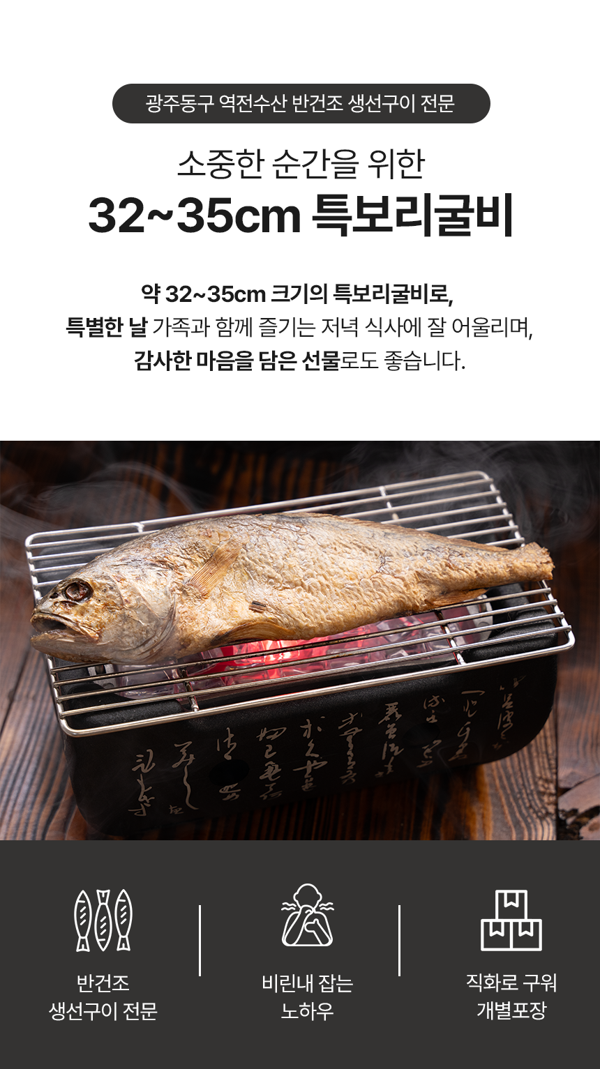 | 포장단위별 내용물의 용량(중량), 수량, 크기 | 보리굴비-32~35cm |