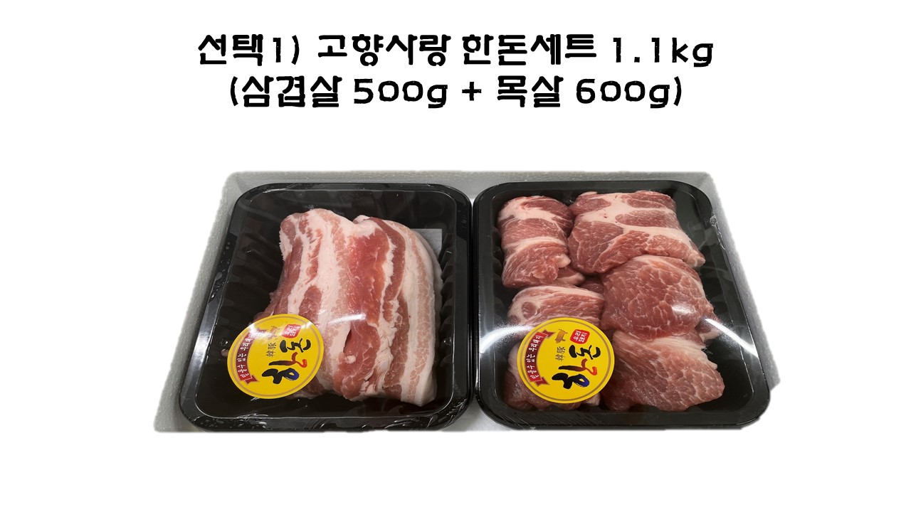 고향사랑한돈세트 1.1kg(삼겹살 0.5kg+목살 0.6kg)