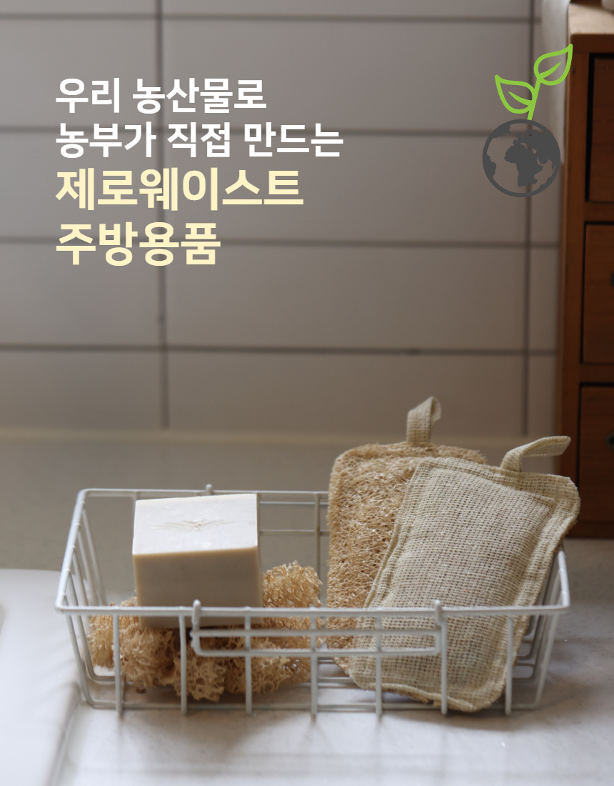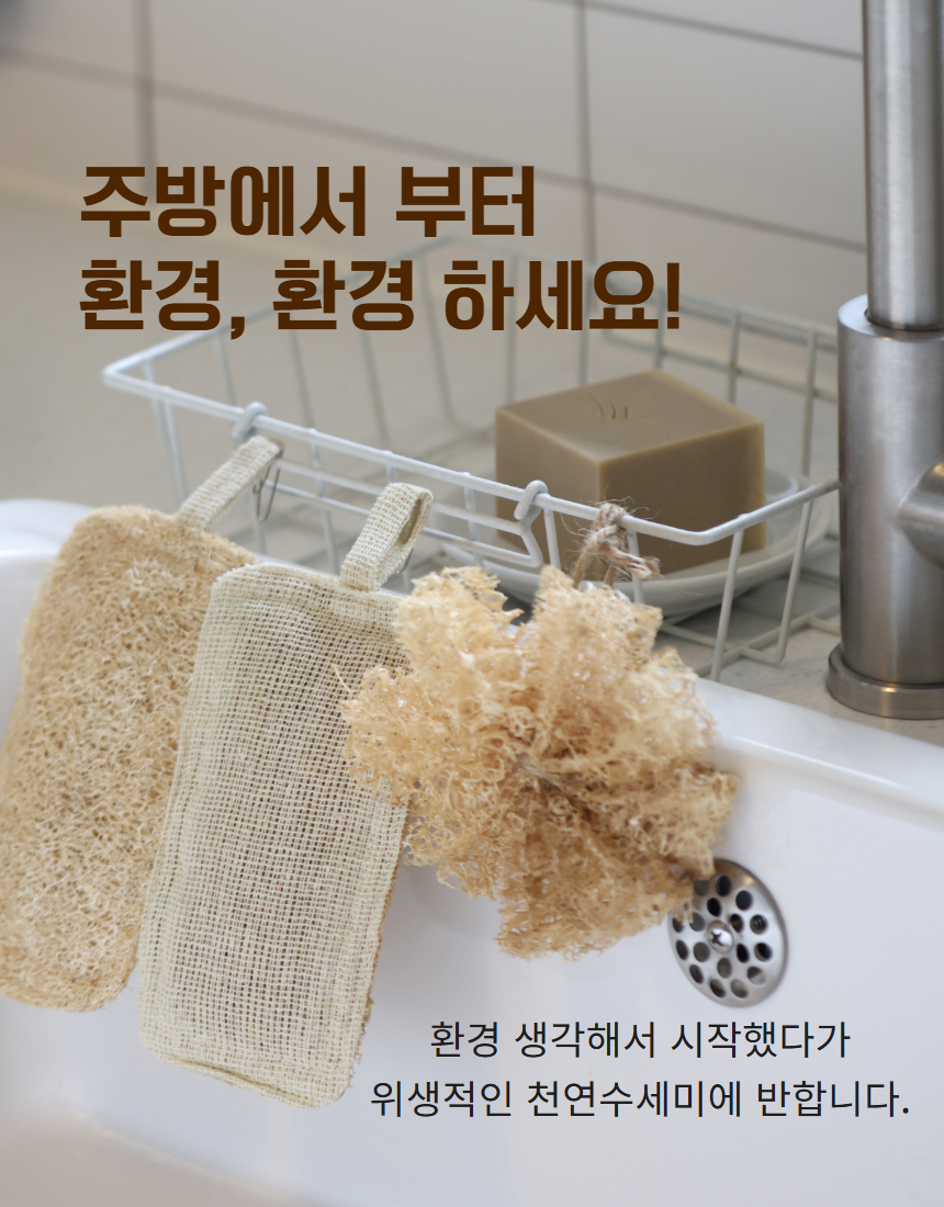 제로웨이스트 세트 6개(천연 수세미 5종+생들기름 설거지바 1개)