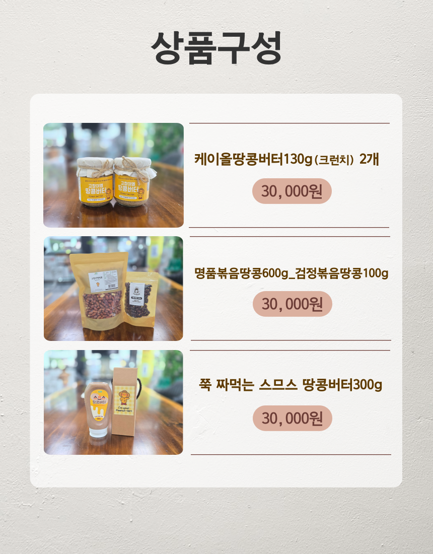 | 원재료명 및 함량 | 땅콩(국내산) 100% |