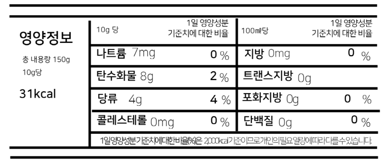 | 식품의 유형 | 상세정보 별도표기 |