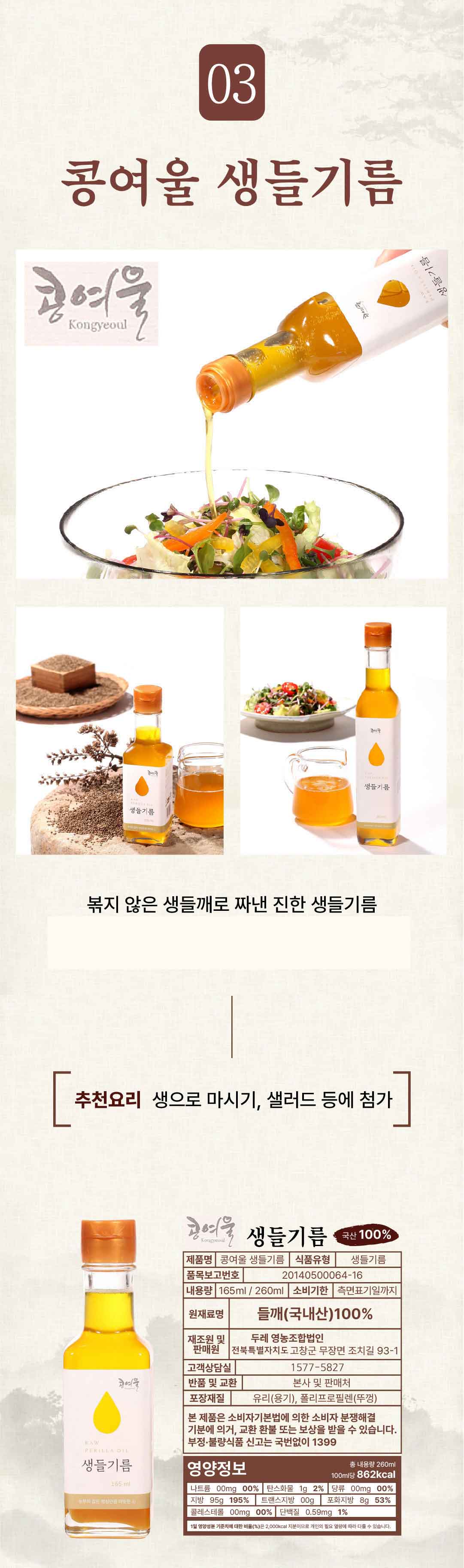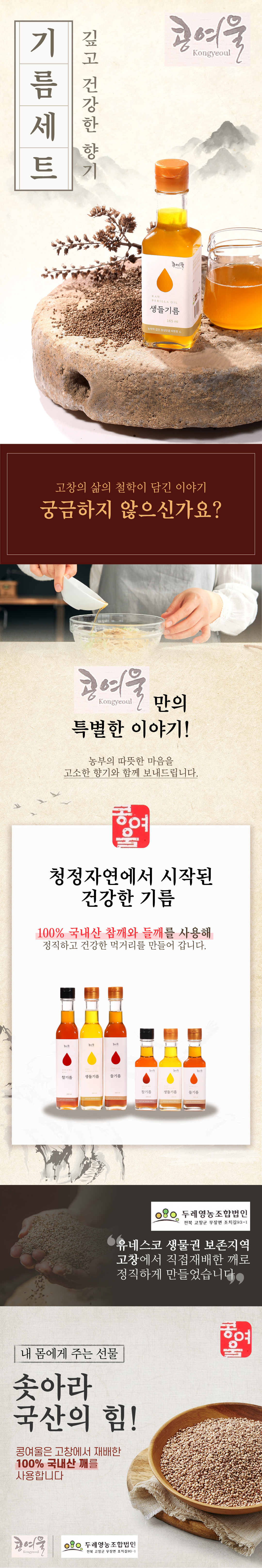 국내산 들깨 100% 생들기름 세트 330ml(165ml*2병)