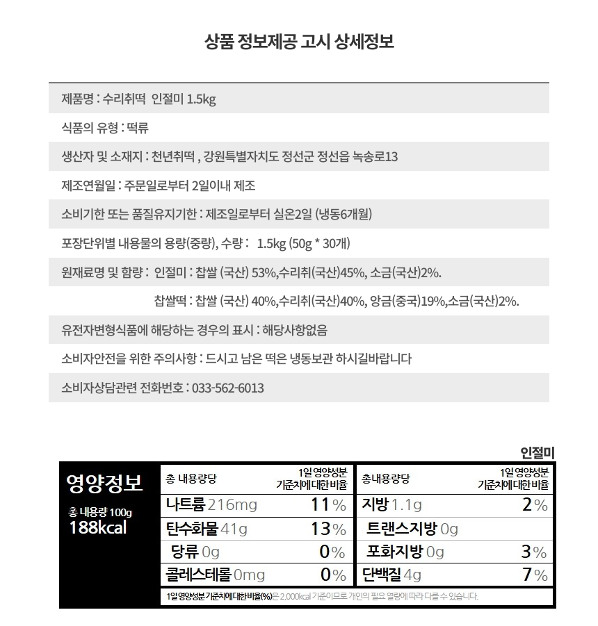 | 소비자상담 관련 전화번호 | 033-562-6013 |