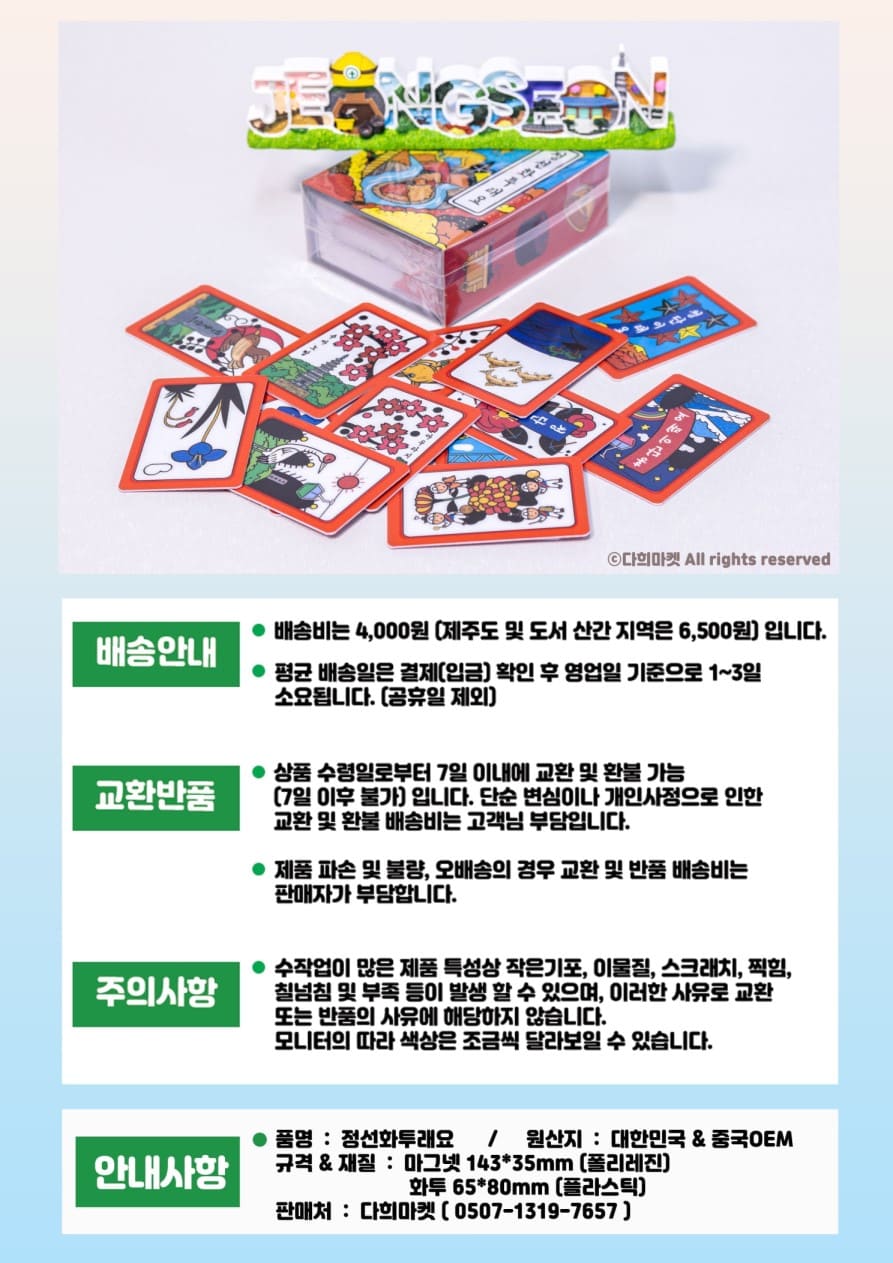 | 품명 및 모델명 | 정선관광화투&정선레터링마그넷세트 정선자석 정선굿즈 정선기념품 자석 마그넷 |