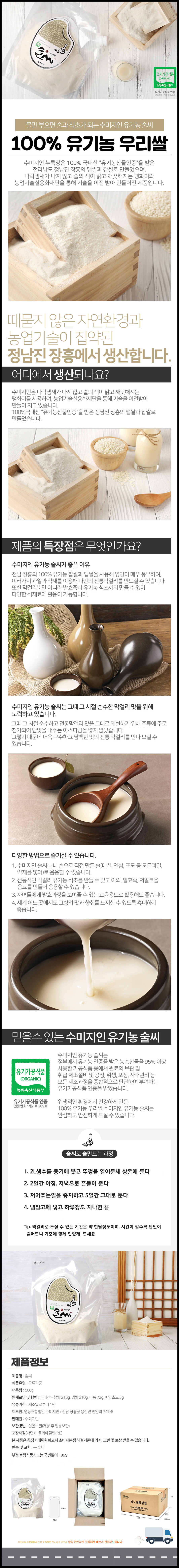 물만부으면 되는 유기농쌀 수제막걸리키트 1kg(0.5kg*2팩)