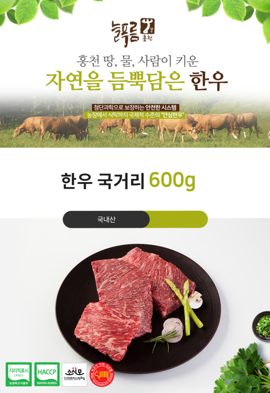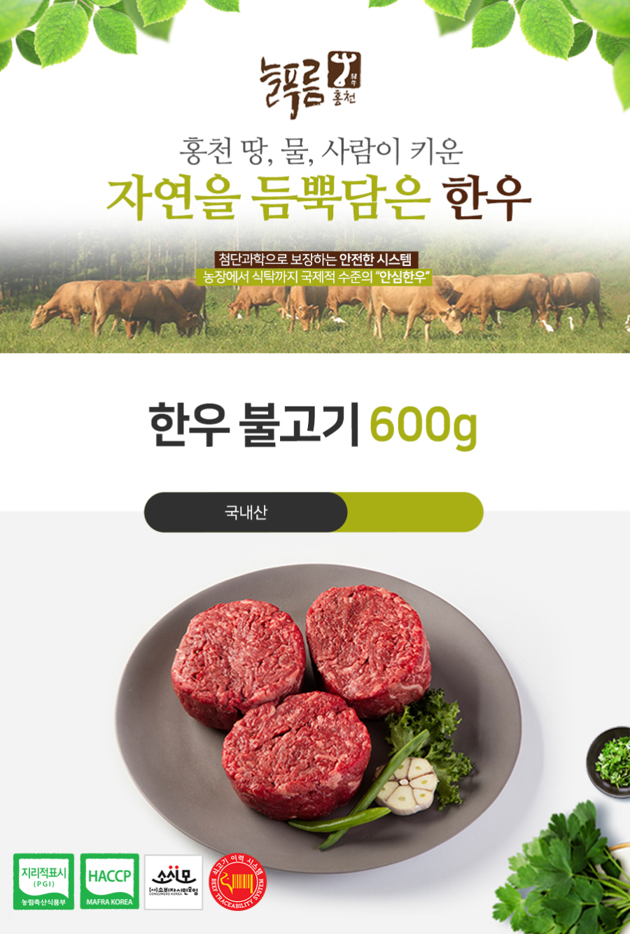늘푸름 홍천한우 실속세트 600g(불고기, 국거리 중 택 1 600g+소스)
