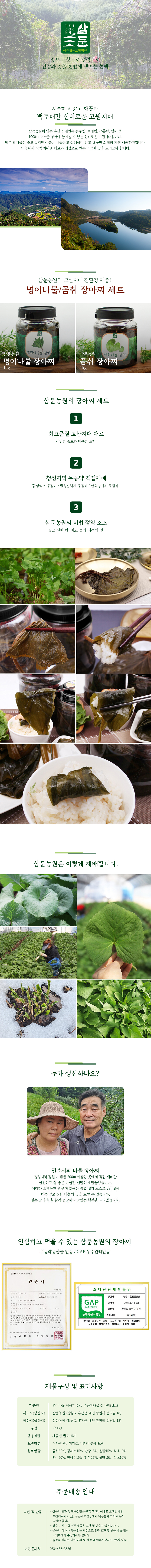 삼둔농원 장아찌 2kg(명이나물장아찌 1kg+곰취장아찌 1kg)