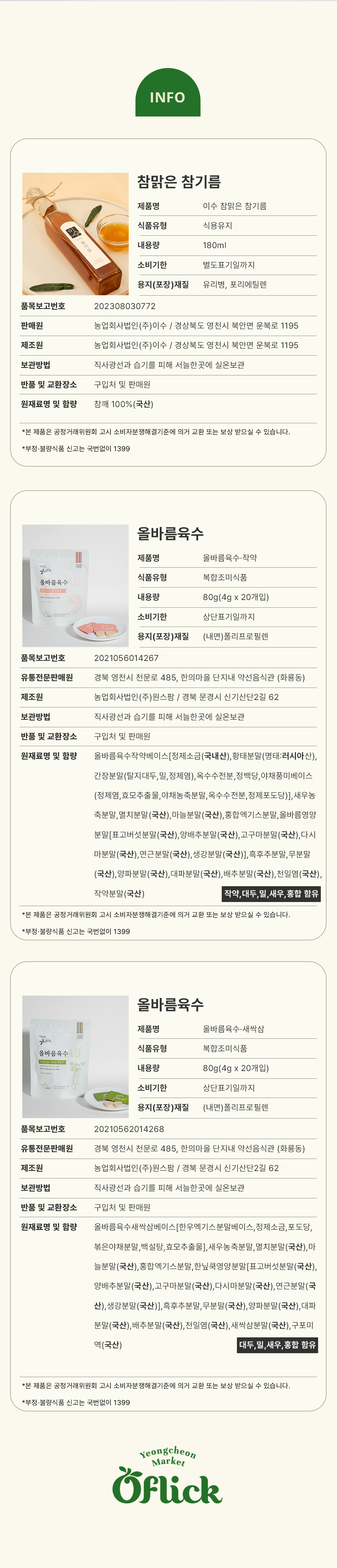 오플릭 요리비법 선물세트 340g(쇠고기 4g*20알+멸치 4g*20알+참기름 180ml)
