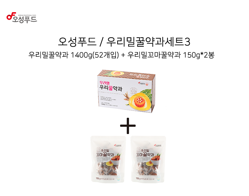 우리밀 꿀약과세트 3세트 1.7kg(꼬마약과 0.15kg*2봉+꿀약과 52개입 1.4kg)