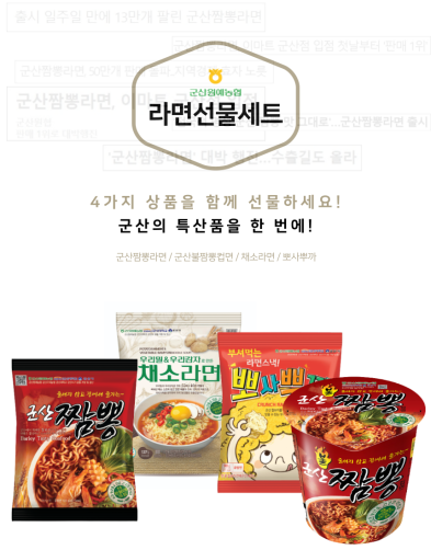※ 문의사항 : 군산원예농협 라면판매사업소(010-2102-0292)로 연락주시면 감사하겠습니다.