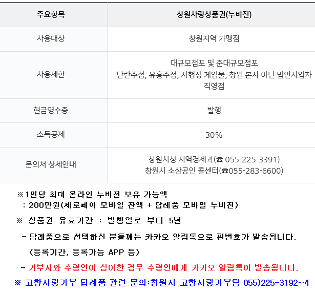 창원사랑의 마음은 창원사랑상품권(누비전) 선택입니다. ^^