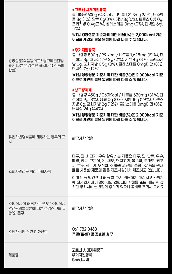 | 소비자상담 관련 전화번호 | 061-782-3468 |