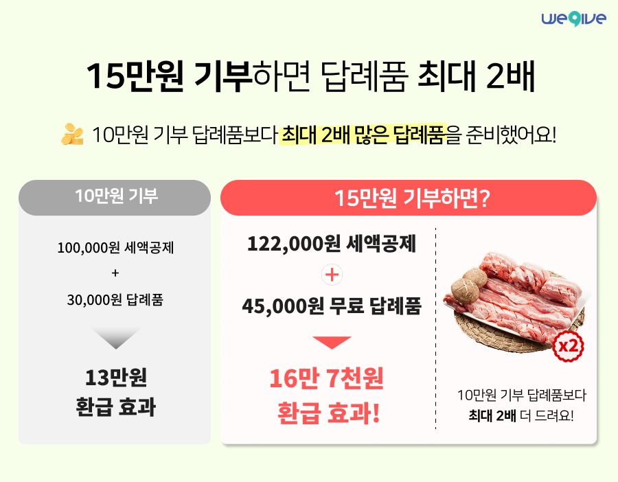 (예시 : 10만원 기부시 3만원 답례품 무료)