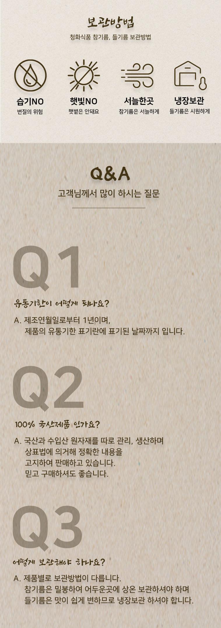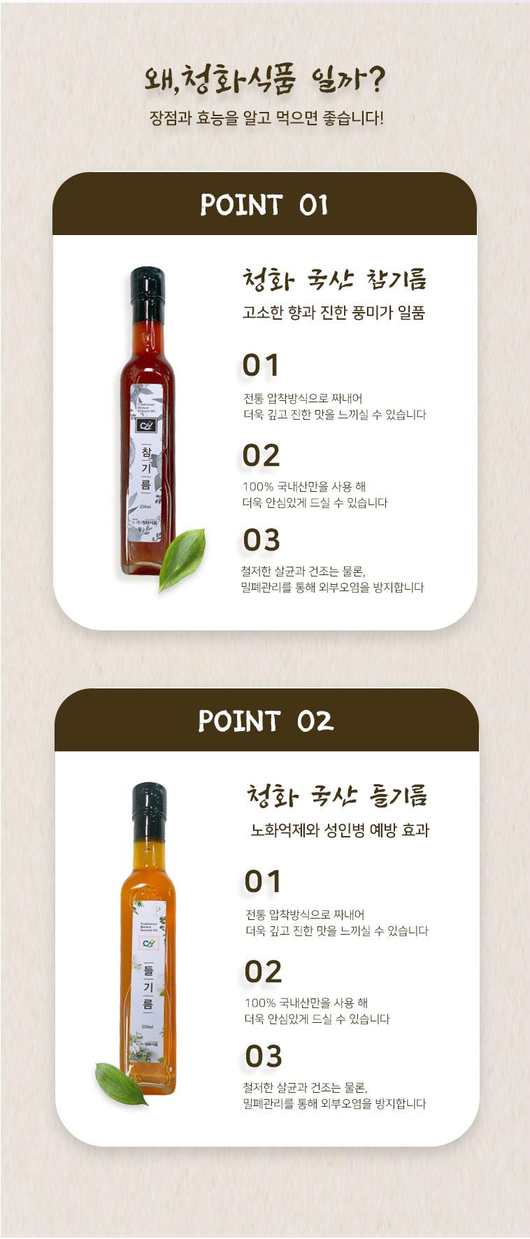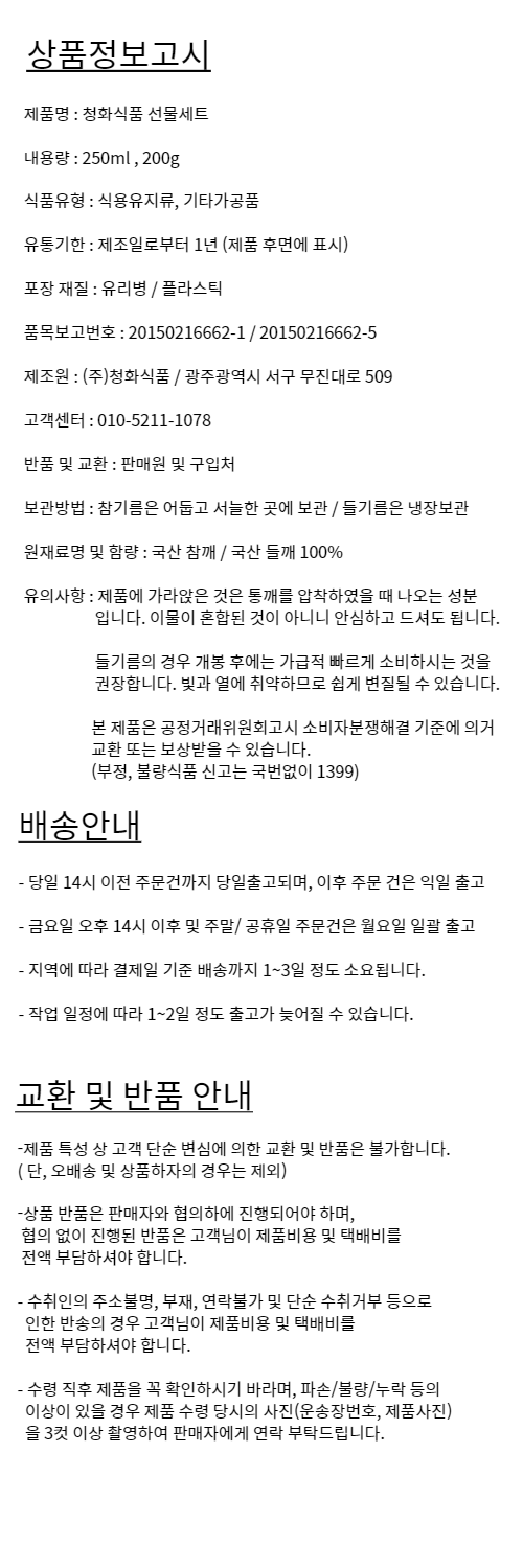 청화식품 선물세트 500ml(참기름 250ml+들기름 250ml)