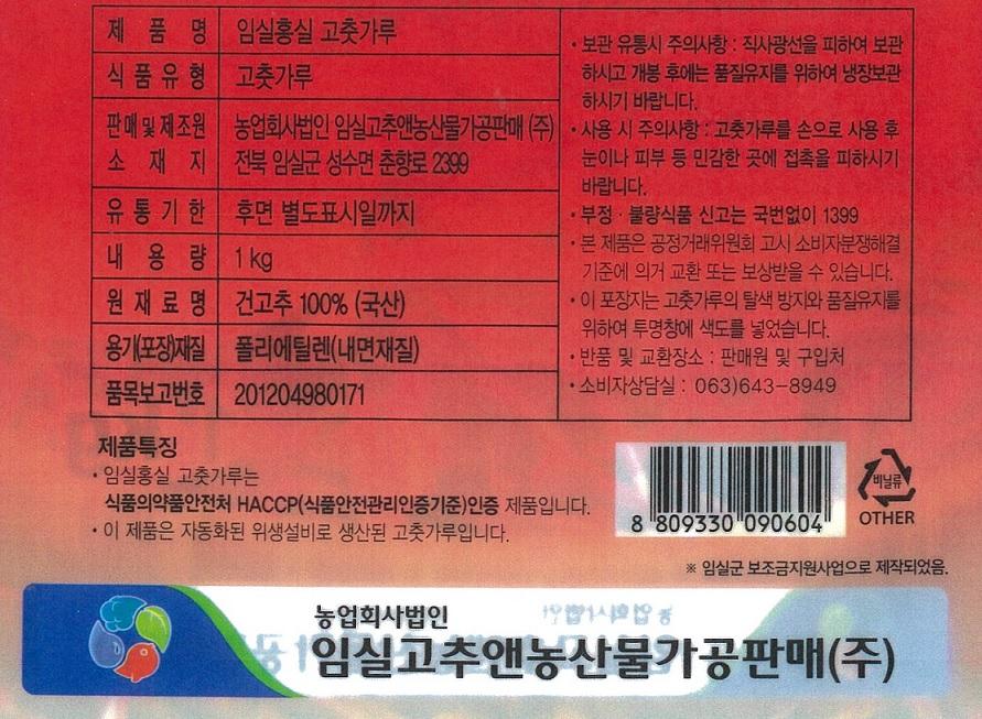 | 생산자 및 소재지 | 농업회사법인임실고추앤농산물가공판매(주) |
