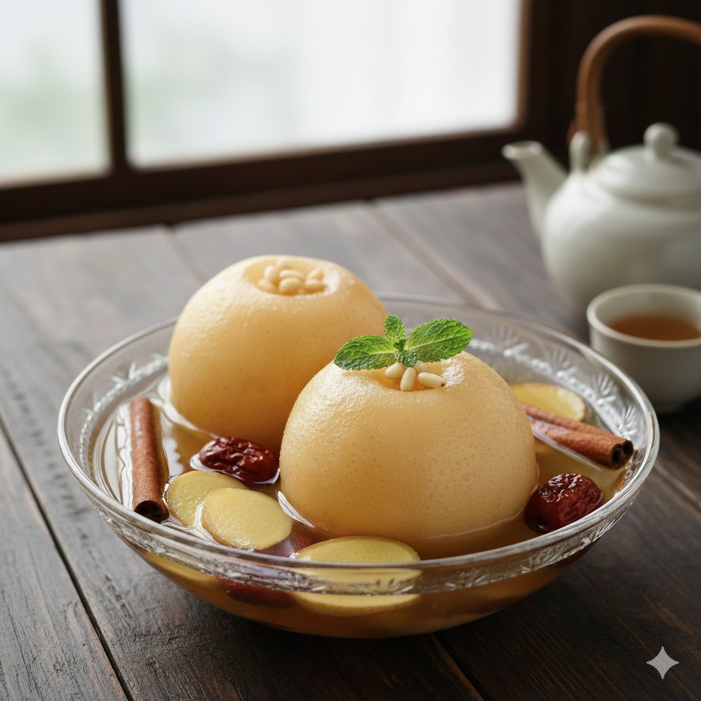 1️⃣ 배숙은 기관지 건강에 좋은 배와 꿀로 만드는 전통 음료예요.